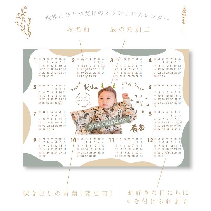 【大人気!!2024 ver.】辰年加工♪お写真&名入れオリジナルカレンダー